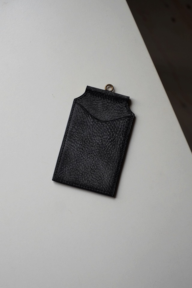 アラスカレザーを贅沢に使用したカードケース。 手に馴染む大きさと角やアールが目を引くデザイン。 シンプルながらT字の真鍮金具がアクセントになっており紐やキーホルダーを取付けることが可能です。 アラスカレザーに合わせた細やかなハンドステッチが上品さを演出し、革の経年変化をしっかりと感じられる作りです。 ※T字金具が入手困難のため数量限定です。 ※ポケットは2枚ありますが、読み取りエラー対策は行なっていないため、2枚入れるのはお勧めしません。 size 約11.3×7cm(金具部分除く) (全て手縫いで仕上げているため、多少の個体差がありますことをご了承ください。)