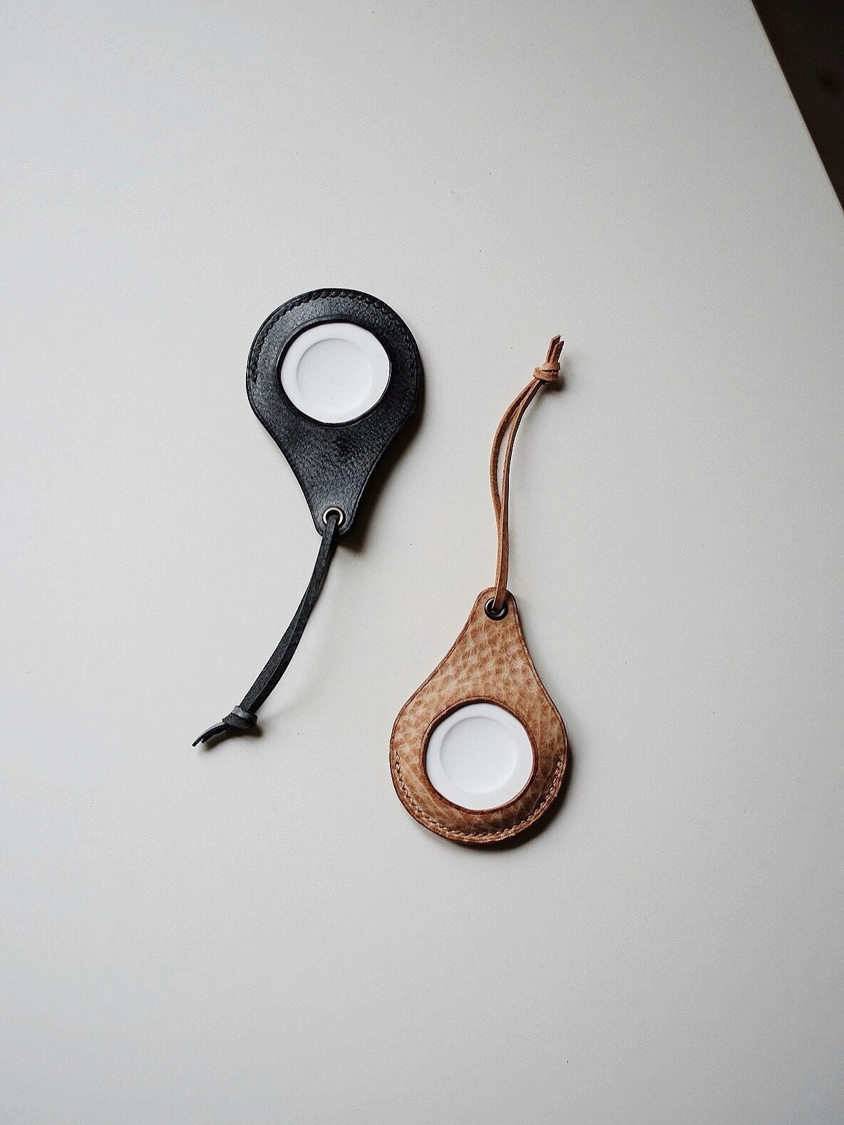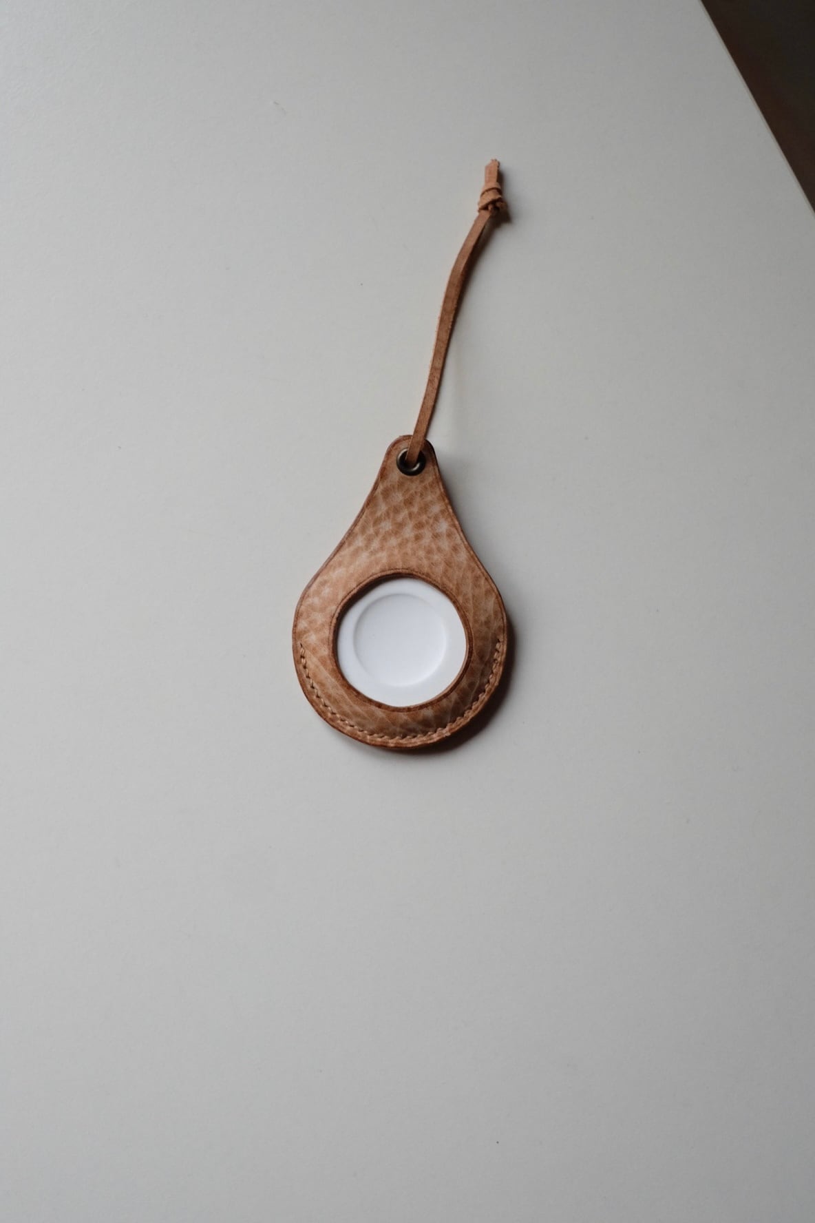よくある簡素なアロマストーンにアラスカレザーでカバーを付けてみました。紐を付けたのでベッドサイドに吊るすることもできます。